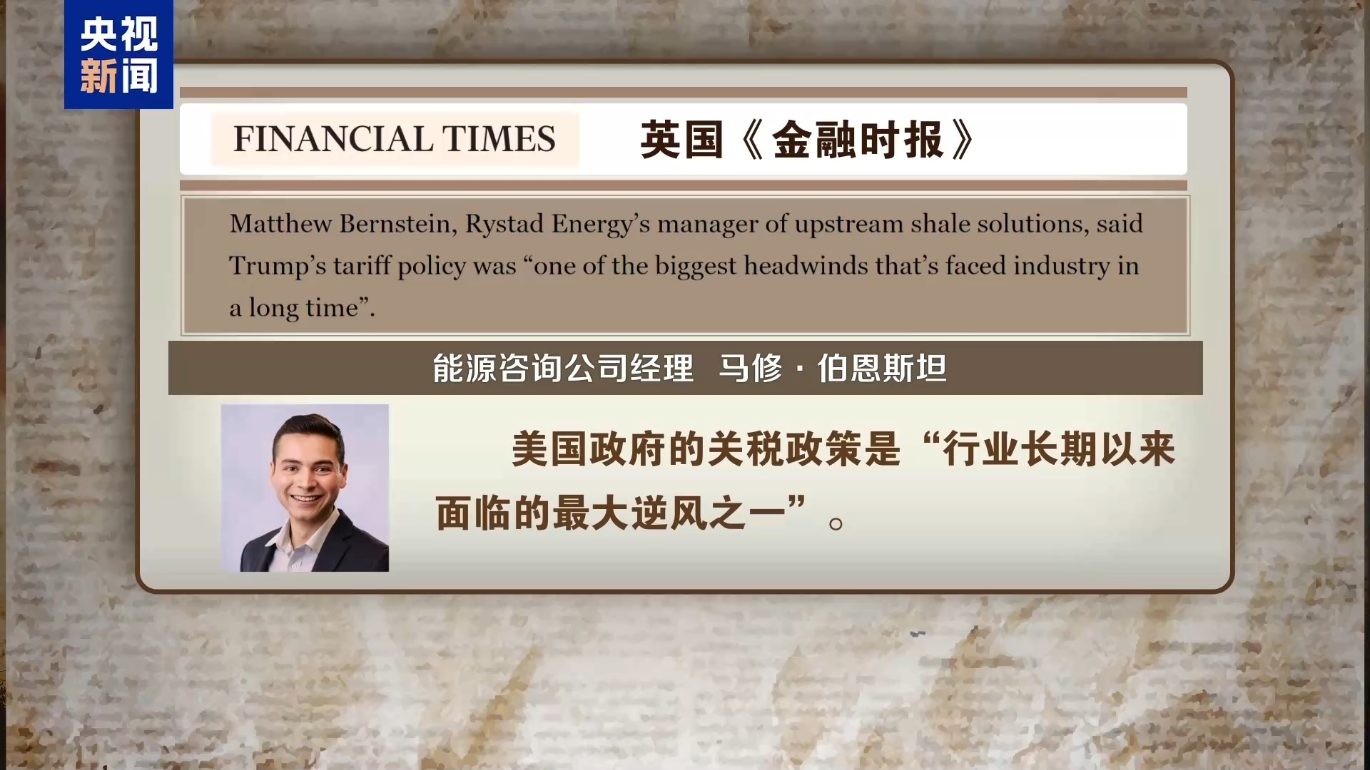 英国《金融时报》援引能源咨询公司经理马修·伯恩斯坦的话报道称,美国政府的关税政策是“行业长期以来面临的最大逆风之一”。他补充说:“如果这种状况持续并且引发经济衰退,那么今年美国石油行业可能将毫无增长。”