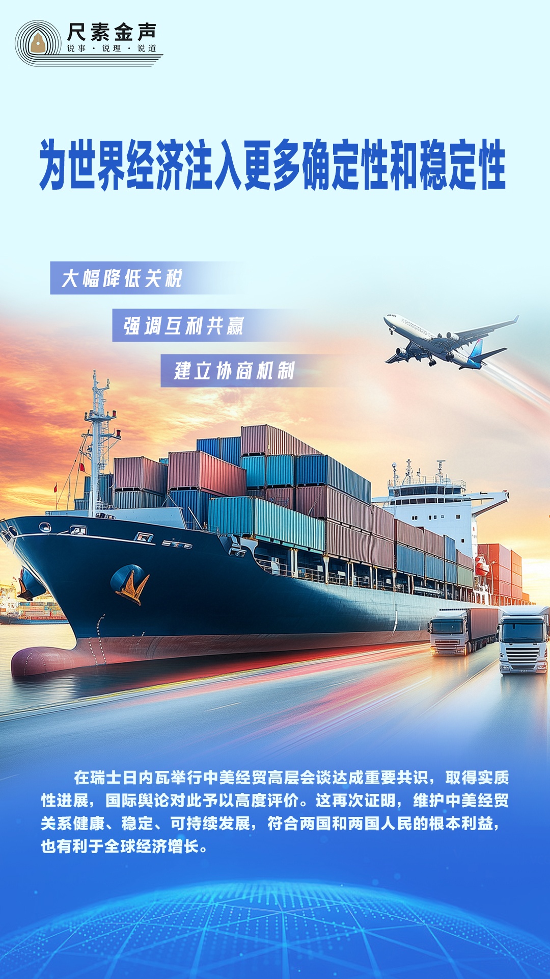 在瑞士日内瓦举行中美经贸高层会谈达成重要共识,取得实质性进展,国际舆论对此予以高度评价。这再次证明,维护中美经贸关系健康、稳定、可持续发展,符合两国和两国人民的根本利益,也有利于全球经济增长。