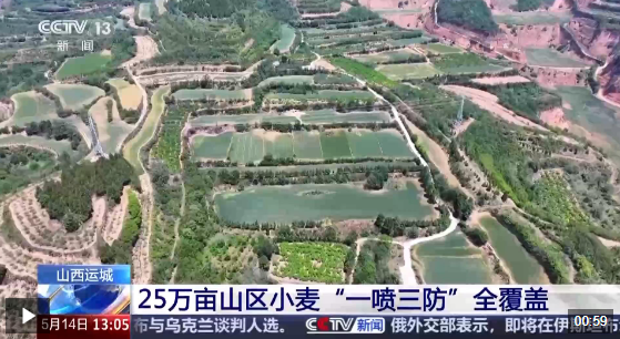 平陆县农业综合行政执法队副队长 戎永康:我们平陆县是山区县,小麦种植地块比较分散。目前,小麦的一喷三防工作进入攻坚阶段,我们组织力量对分散地块的小麦进行集中喷防,现在已经完成17万亩,预计再有三到五天时间,全县25万亩小麦的一喷三防工作实现全覆盖。