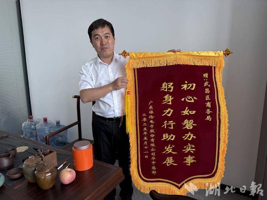 5月14日,广东保伦电子股份有限公司创始人赵定金专程来到武汉,向武昌区政府赠送锦旗,感谢该区“零号员工”组团服务企业落户。全程参与落户事宜的保伦电子华中总部负责人张建波感慨:“这里的营商环境真是无得顶!”