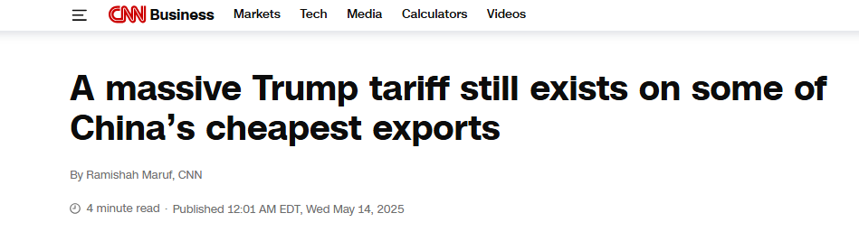 对此,美国有线电视新闻网CNN在14日的报道中说,虽然白宫降低小额包裹关税可以让购物者稍稍松口气,但关税仍然高达54%,这将会扰乱数百万在希音和拼多多国际版等超低价电商平台购物的美国人的消费习惯,会对许多企业和消费者构成沉重打击。