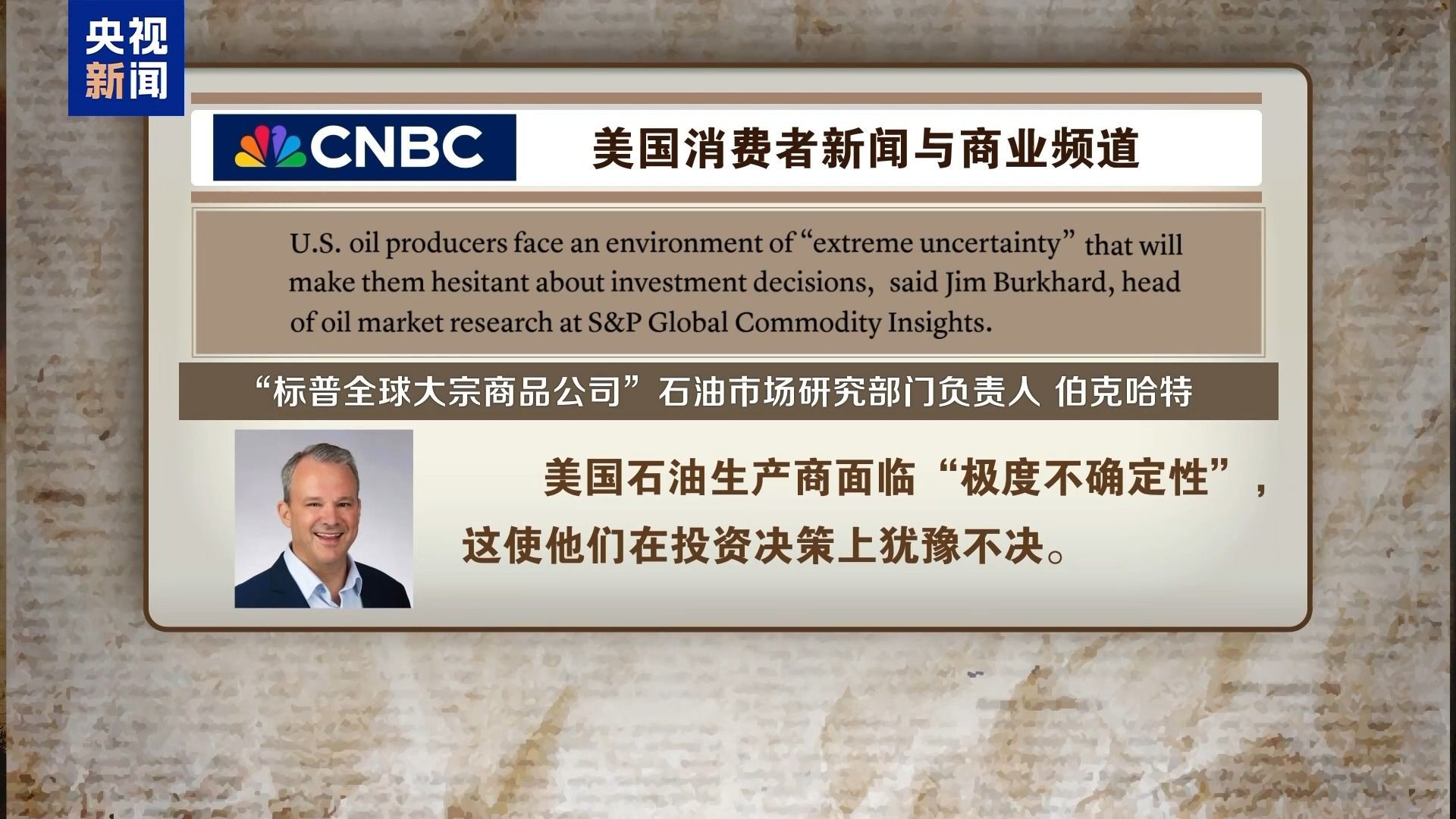 英国《金融时报》援引能源咨询公司经理马修·伯恩斯坦的话报道称,美国政府的关税政策是“行业长期以来面临的最大逆风之一”。他补充说:“如果这种状况持续并且引发经济衰退,那么今年美国石油行业可能将毫无增长。”