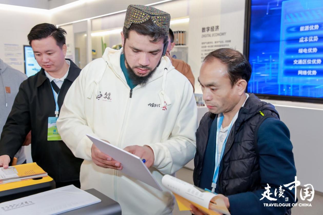 《喀布尔时报》总编尼克马尔(中)在乌兰察布(京蒙)人才科创园展厅仔细了解相关介绍