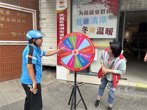 “中国红十字会成立于哪一年?”“成人胸外心脏按压频率为多少?”在“红十字知识大转盘”环节,骑手们围绕急救常识、公共卫生知识等内容踊跃答题,转盘游戏将严肃的急救知识转化为趣味互动。社区工作者介绍,游戏化的学习方式让抽象的救护理论入脑入心,守护生命的技能不再是纸上谈兵,而是融入新就业群体日常认知的安全密码。