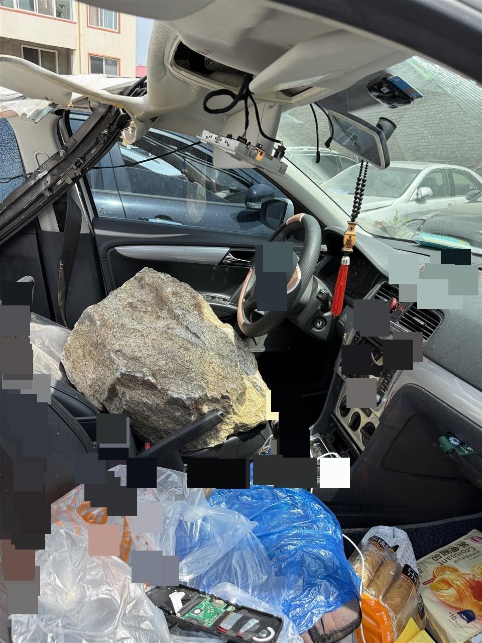 砸进驾驶室的石头,图源:受访者