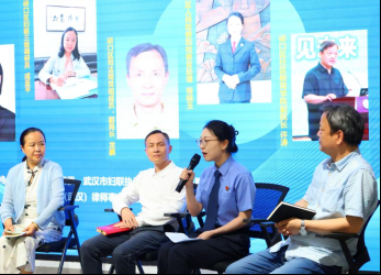 家庭教育交流座谈环节,湖北省妇联常委、武汉市妇联执委、硚口区妇联副主席、北京德和衡(武汉)律师事务所管理主任谭玉华担任主持人,硚口区司法局党组成员、副局长龙鹏,硚口区妇联三级调研员成亚平,硚口区人民法院审判员罗丹,硚口区人民检察院检察官助理程晓玉,硚口区社区教育学院副院长许涛,武汉市律协婚姻家事专业委员会委员、湖北维力律师事务所律师高丽君受邀担任嘉宾,共同围绕《中华人民共和国家庭教育促进法》施行以来的实践与应用,并结合硚口区在家庭教育和青少年法治教育领域的融合与探索展开深入探讨。大家纷纷结合自身工作经验以及具体理论研究,从不同角度进行分享,将现场气氛推向高潮,引发家长代表们的广泛共鸣与深度思考。