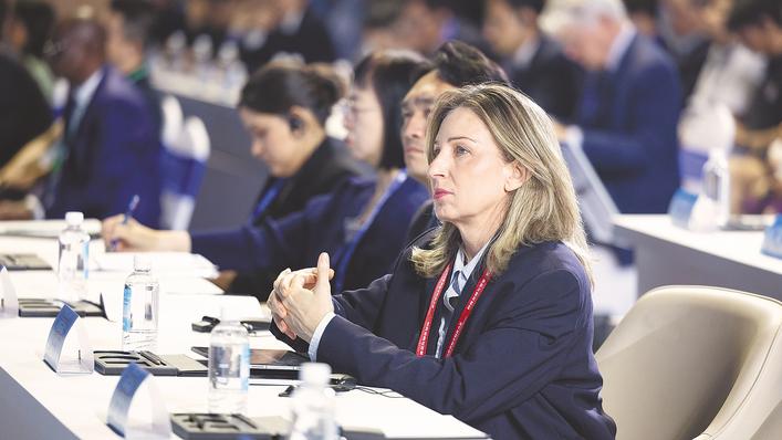 参加2025世界数字教育大会全体会议的外国嘉宾仔细聆听。