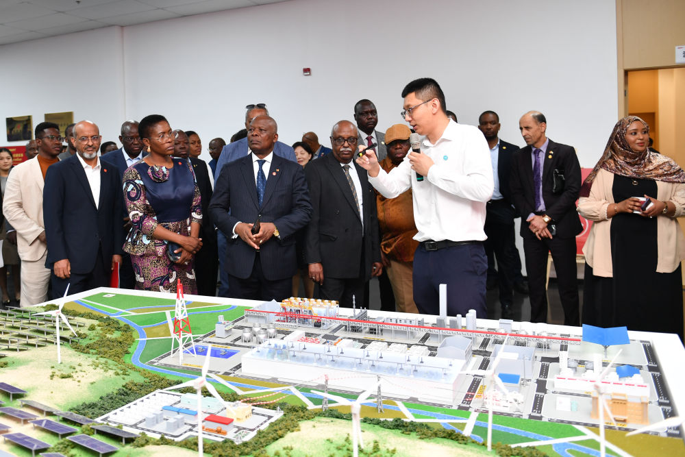 在三一硅能(株洲)有限公司参访时,几内亚驻华大使科伊塔向身旁的非洲同事介绍了展板上的几内亚矿山微电网项目。她说,几内亚的医疗卫生、交通网络、住房工程等领域亟需能源支撑,期待将中国清洁能源的先进技术经验同几内亚人力资源优势相结合,开创可持续发展的互利共赢新局面。