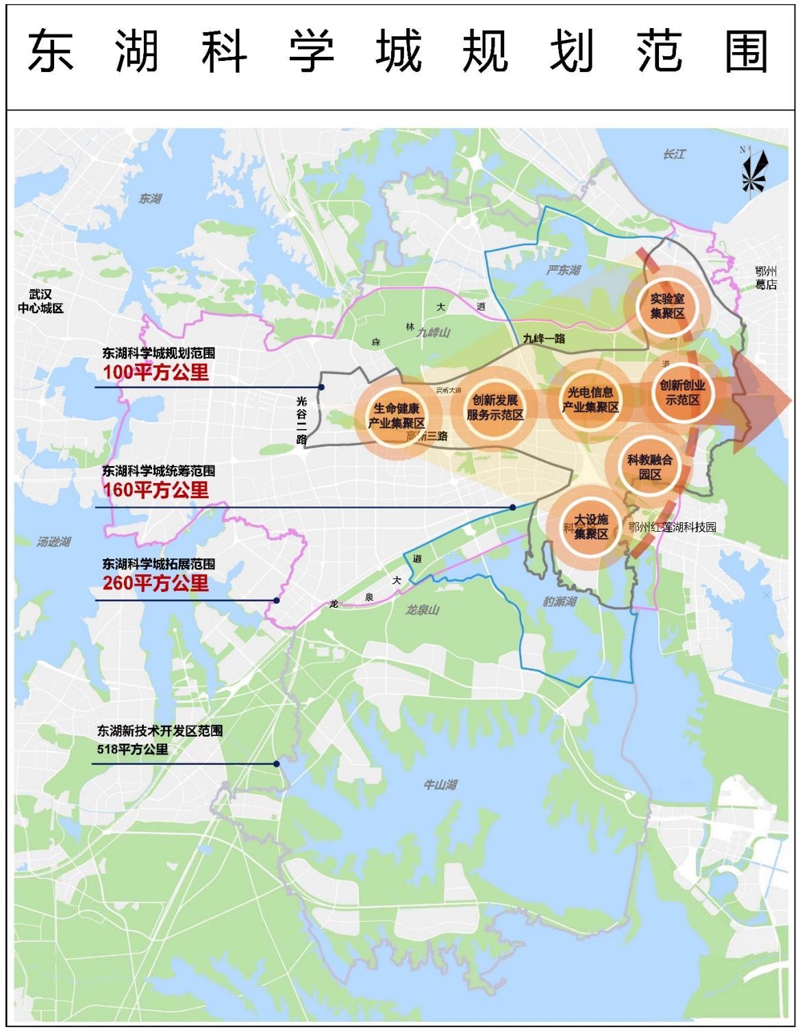 东湖科学城规划范围及空间布局。