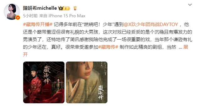 来源:荆楚网综合@北京青年报、@藏海传官微、@陈妍希等