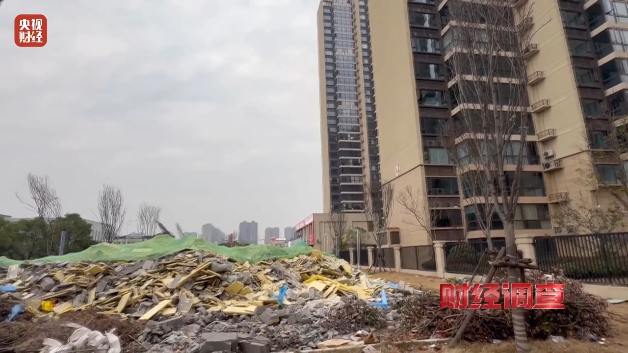 仔细查看,在地块的边缘可以看到不少大小不一的水泥块和砖渣。随后,记者扒开了覆土层,土层下面水泥块、钢筋等建筑垃圾随处可见。