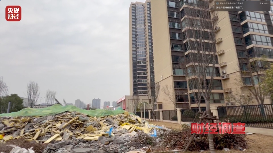 记者在九华湖壹号小区物业指定的建筑垃圾堆放点,看见一辆货车将未分类的建筑垃圾装车、运走。