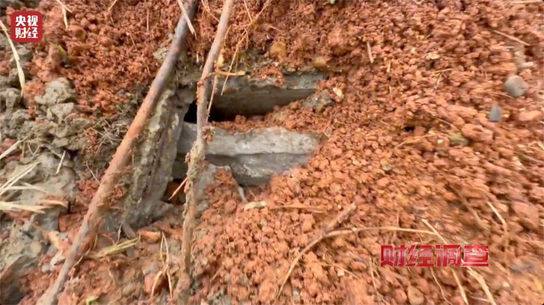 仔细查看,在地块的边缘可以看到不少大小不一的水泥块和砖渣。随后,记者扒开了覆土层,土层下面水泥块、钢筋等建筑垃圾随处可见。