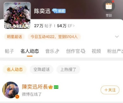 5月19日,陈奕迅本人登录微博,账号显示在线状态,话题#陈奕迅微博在线# 迅速登上热搜榜首。