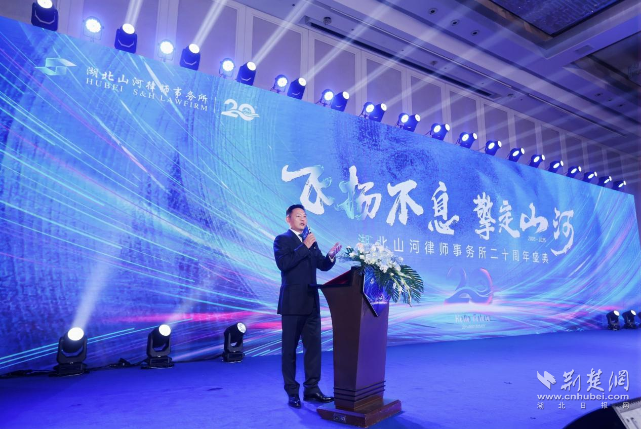 荆楚网(湖北日报网)讯(通讯员 王原原)5月18日,湖北山河律师事务所举办"飞扬不息 擎定山河"二十周年庆典。本次盛典以"专业立本、创新致远"为核心,以"感恩与见证"为主线,汇聚司法行业领导、律师协会领导、法律界专家学者及山河所业务伙伴,共同见证这一法治盛事。