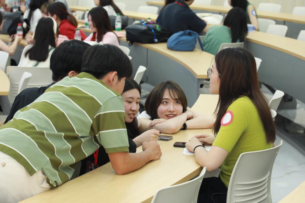 5月13日,在北京语言大学,庆应义塾大学学生森翔子(右二)与中国大学生交流。新华社发(北京市人民对外友协供图)