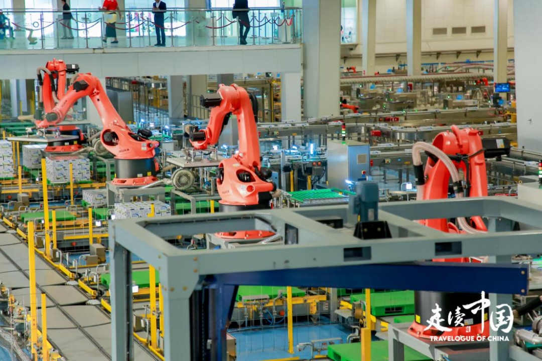 伊利现代智慧健康谷内,码垛机器人正在工作