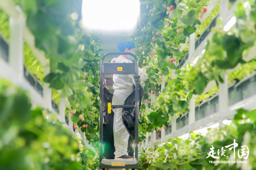 察右前旗植物工厂草莓基地车间内