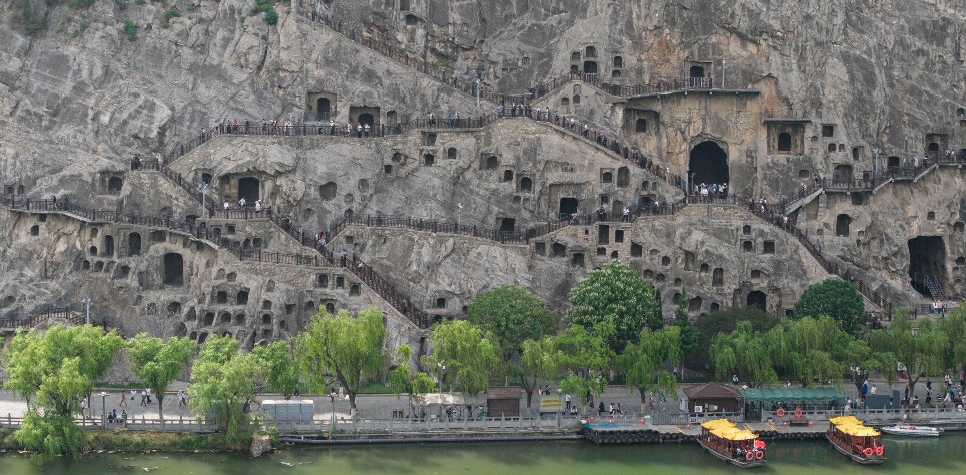 龙门石窟开凿于北魏孝文帝迁都洛阳之际,繁荣于唐代,历经400多年雕刻而成。如今,2345个窟龛、近11万尊佛像、2800多块题记碑刻、近80座佛塔,镶嵌在伊河两岸的香山和龙门山上,从不同侧面记录了中国古代政治、经济、宗教、文化等诸多领域的发展变化。