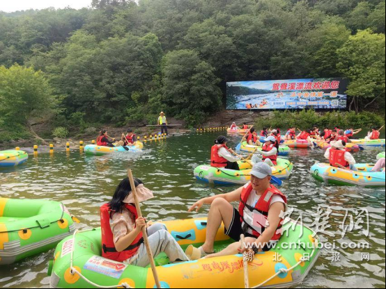 活动现场,青年男女们分组参与鸳鸯溪漂流,在激流与欢笑中增进了解。