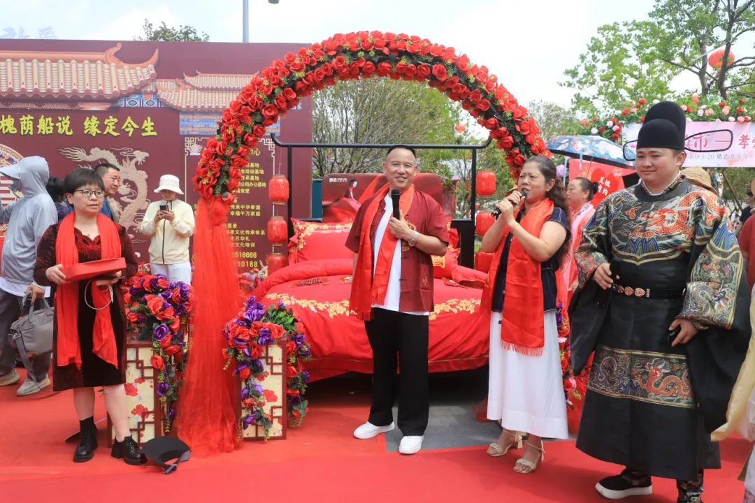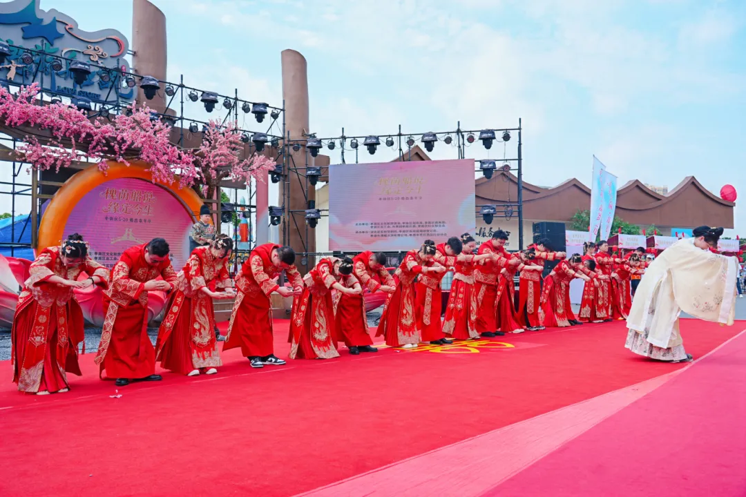 活动以千年槐荫传说为底色,非遗婚俗展演和时尚打卡装置交织,传统婚庆礼仪与数字时代浪漫在此“跨时空对话”,让群众一站式体验文化、打卡、消费,尽享古今交融的婚俗盛宴。