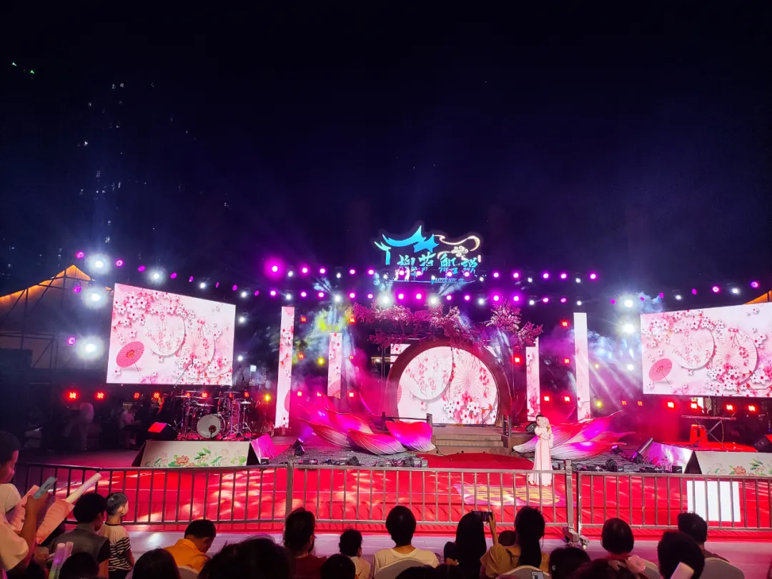 “众里寻他千百度,蓦然回首,那人却在,灯火阑珊处。”当暮色笼罩,主会场化身为欢乐海洋。创意楚剧《槐荫新韵》震撼开场,传统戏曲与现代光影技术碰撞,演绎董永七仙女的千年爱情传说。随后,《爱的律动》《花好月圆》等节目轮番登场,从潮流歌舞到古典民乐,满足不同年龄层观众的观赏需求。