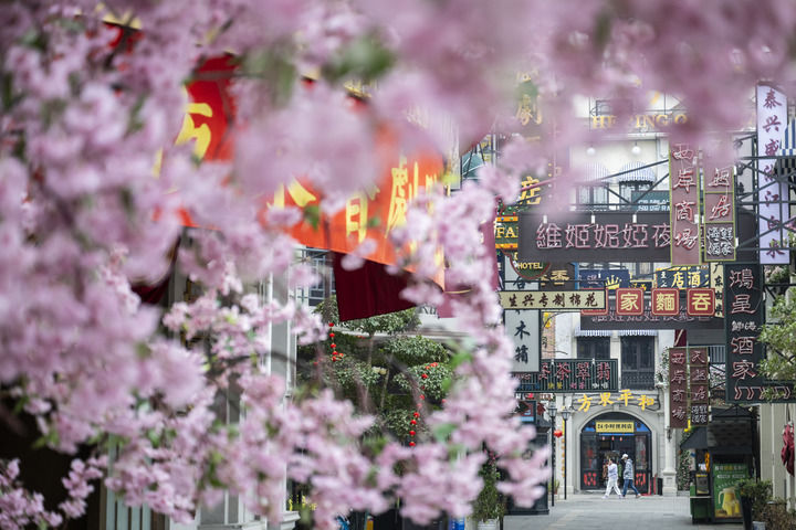 3月31日,游客在乔街景区漫步。