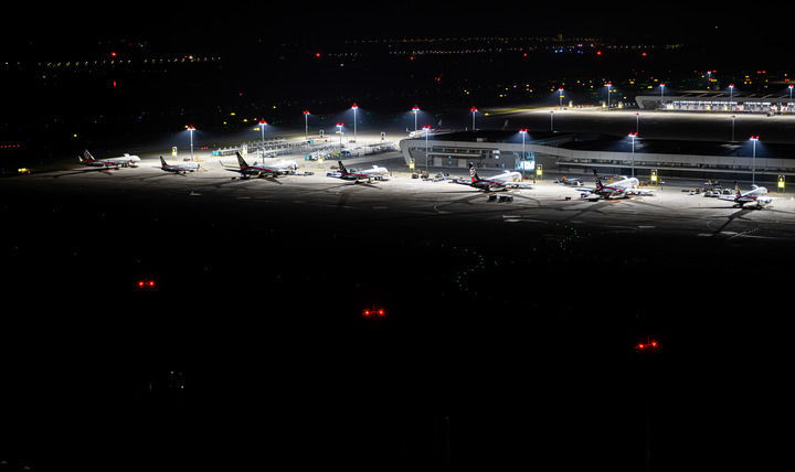 2024年6月2日凌晨拍摄的鄂州花湖国际机场停机坪一角。