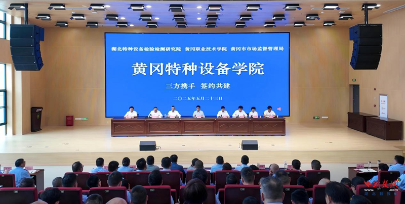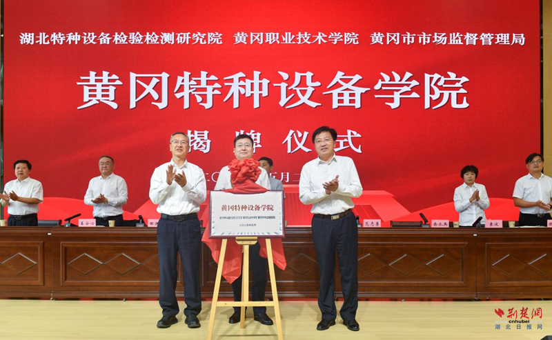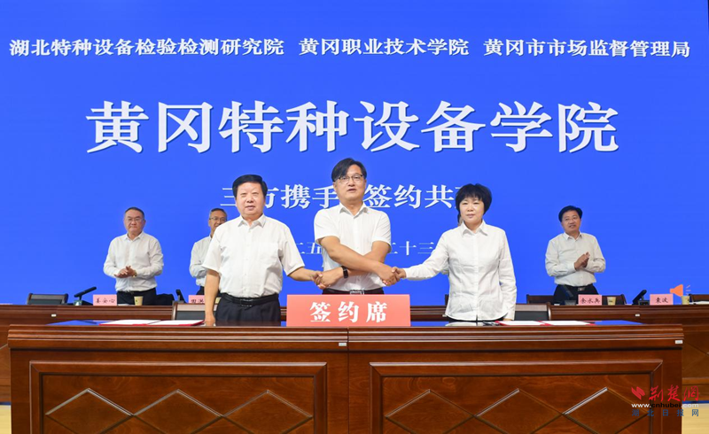 荆楚网(湖北日报网)讯(通讯员郝如卓、边学飞、高佳磊)5月23日,湖北特种设备检验检测研究院(简称湖北特检院)、黄冈职业技术学院、黄冈市市场监督管理局三方共建黄冈特种设备学院签约揭牌仪式在黄冈职业技术学院举行,这是湖北成立的首个特种设备学院。