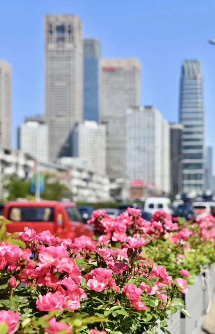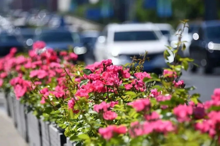 北京道路上盛放的月季。图源:北京朝阳公众号