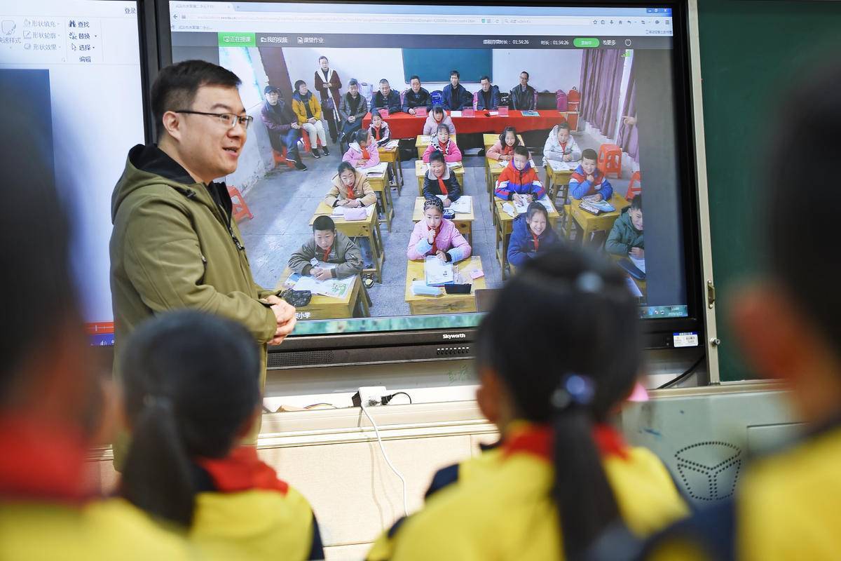 水果湖第二小学利用互联网直播技术,与对口帮扶的教育资源薄弱学校实现一对一“同步课堂“,开展每周2次常态化远程视频教学。(湖北日报全媒记者 李溪 摄)