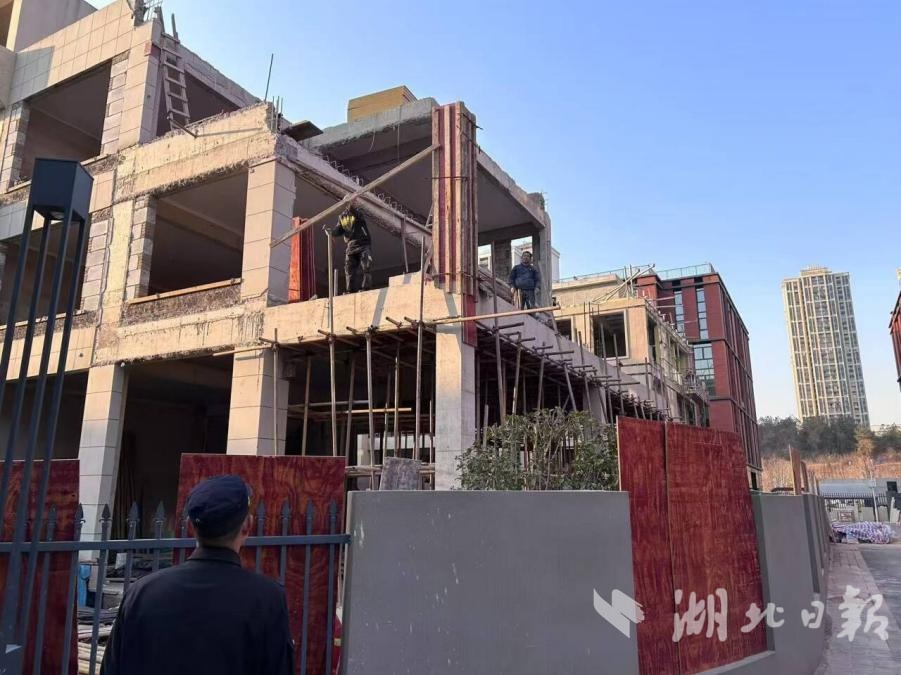 中海寰宇天下天钻项目顶楼违建(画圈处)被拆除。