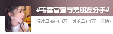 相关话题#韦雪官宣与男朋友分手#迅速冲上微博热搜。