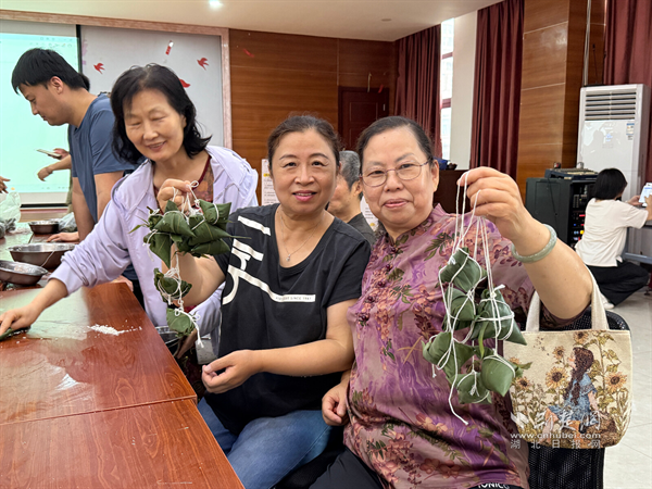 包粽子环节中,经验丰富的门栋长李师傅主动当起老师,他一边熟练地操作着,一边耐心细致地向其他成员传授包粽子的技巧:“先把粽叶卷成漏斗状,接着放入适量的糯米和馅料,最后用棉线紧紧缠绕。”在他的指导下,大家纷纷动手尝试。现场,大家一边交流着包粽子的心得,一边分享着平日里社区工作中的点点滴滴,欢声笑语回荡在活动现场,情感也在一次次的交流中不断升温。