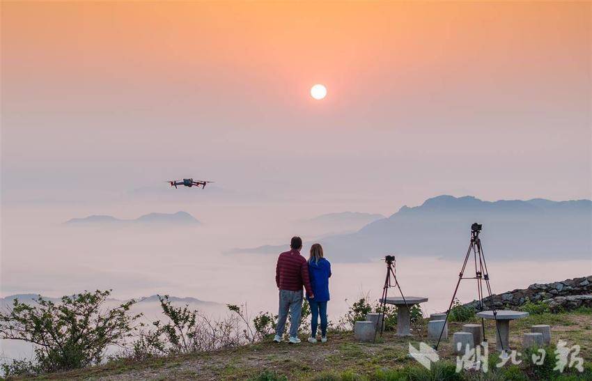 5月29日清晨,摄影爱好者在武汉清凉寨景区拍摄日出云海景观。(湖北日报全媒记者 柯皓 通讯员 方崇阳 摄)