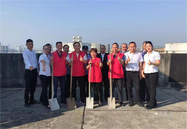 罗新华带领志愿者清理楼顶种菜整改。 通讯员供图