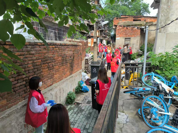 永升物业党支部志愿者和社区工作人员共同清洁家园。 通讯员供图