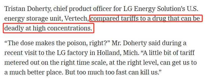 一位业内人士用 “一种高浓度时可致死的药”来形容美国关税。他告诉《纽约时报》,在正确的时间、正确的水平上加征一些关税或许有利于产业发展,但太多、太快的关税则会“杀死我们”。