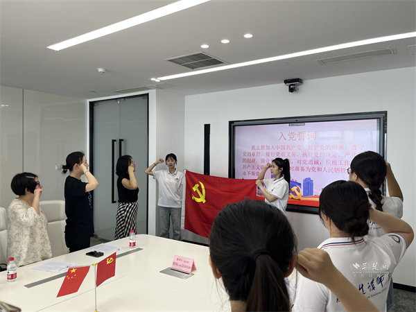 支部主题党日以“5+N”活动模式进行,来自部分楼宇企业党支部、杨园街道机关党支部和武汉理工大学马克思主义学院研究生讲师团党支部的30余名党员共同参与。活动伊始,参会党员举起右臂,重温入党誓词,用铮铮誓言诠释入党初心。楼宇联合党支部书记、二桥社区副书记徐玮为参会党员规范展示了支部主题党日的5项规定动作。