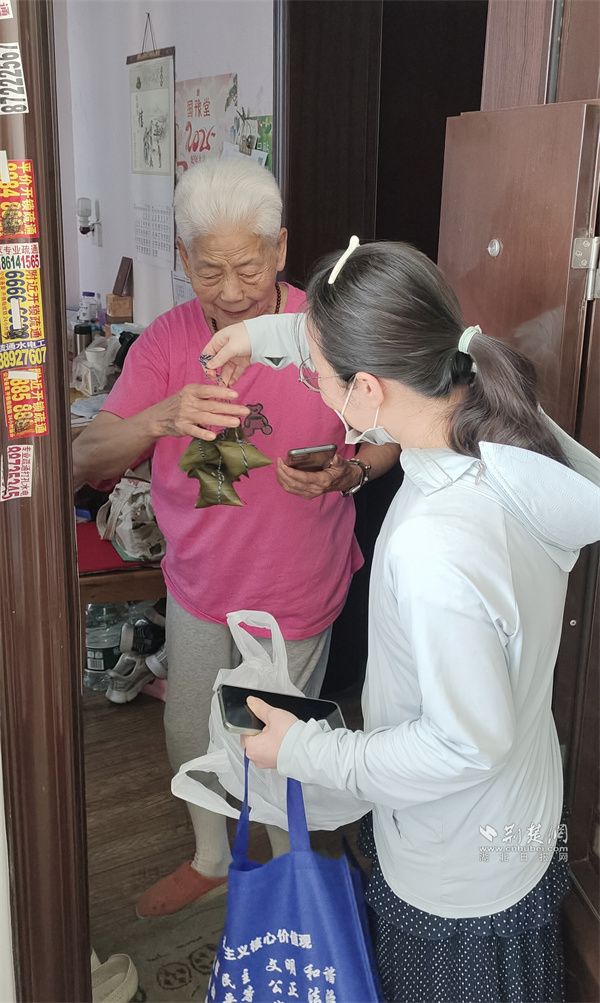 端午节前夕,街道还为老人们准备了慰问物资。由社区网格员逐一敲开独居老人的家门,将慰问物资与节日关怀送给老人。看着热腾腾的粽子和慰问品,老人们脸上洋溢着幸福的笑容。