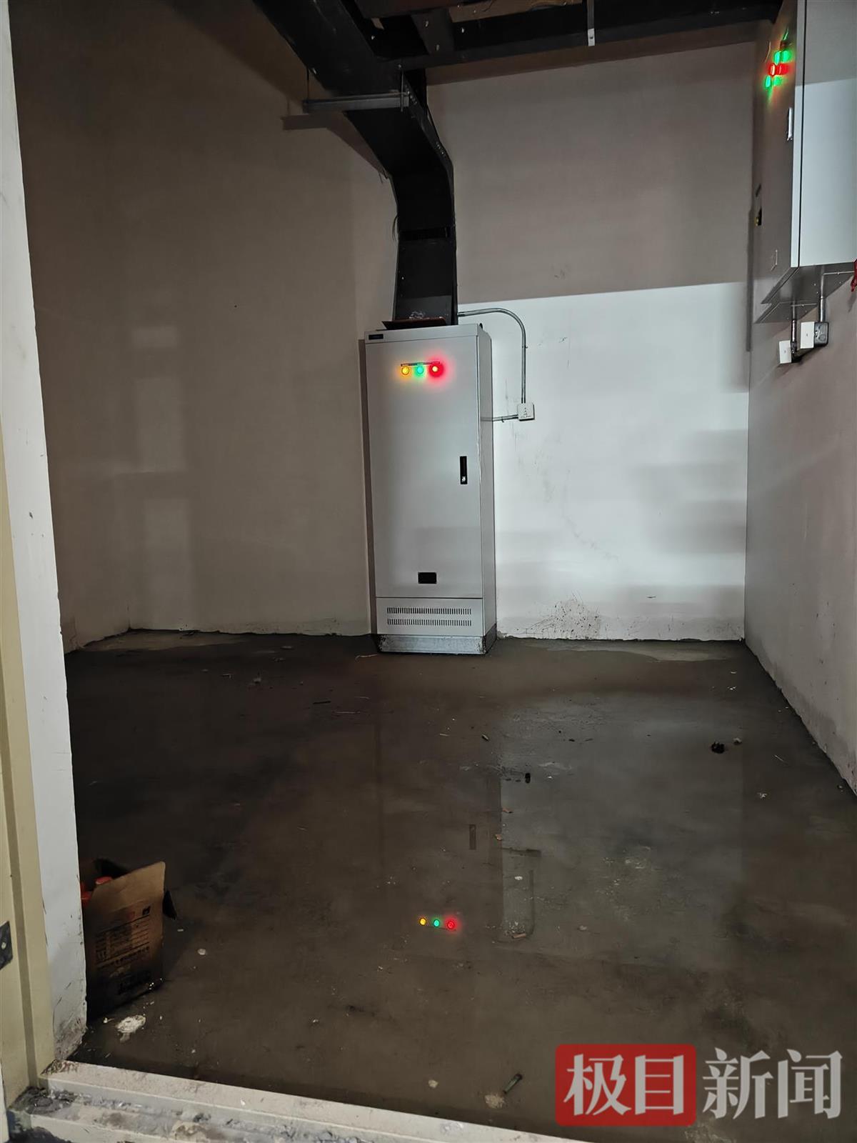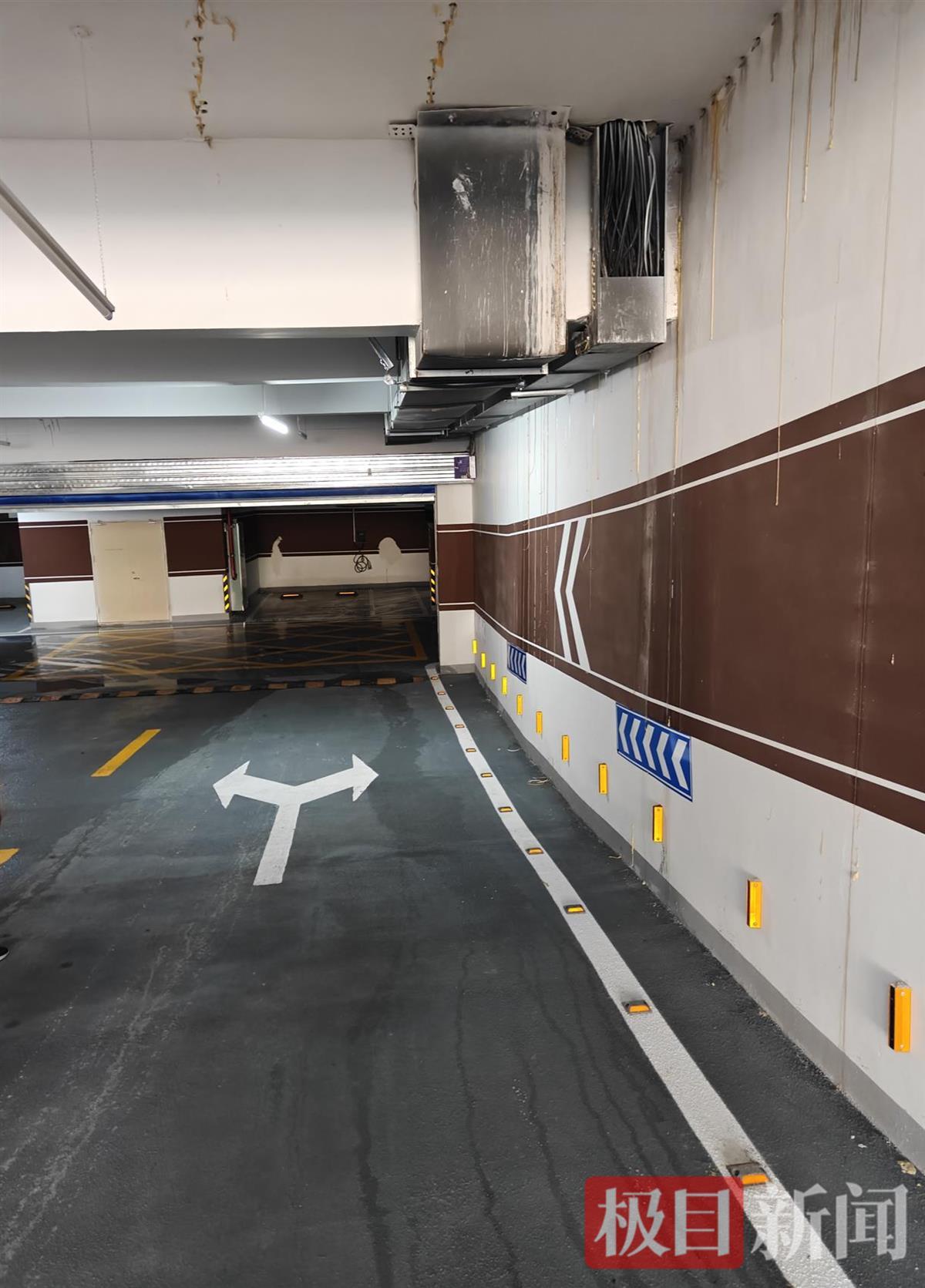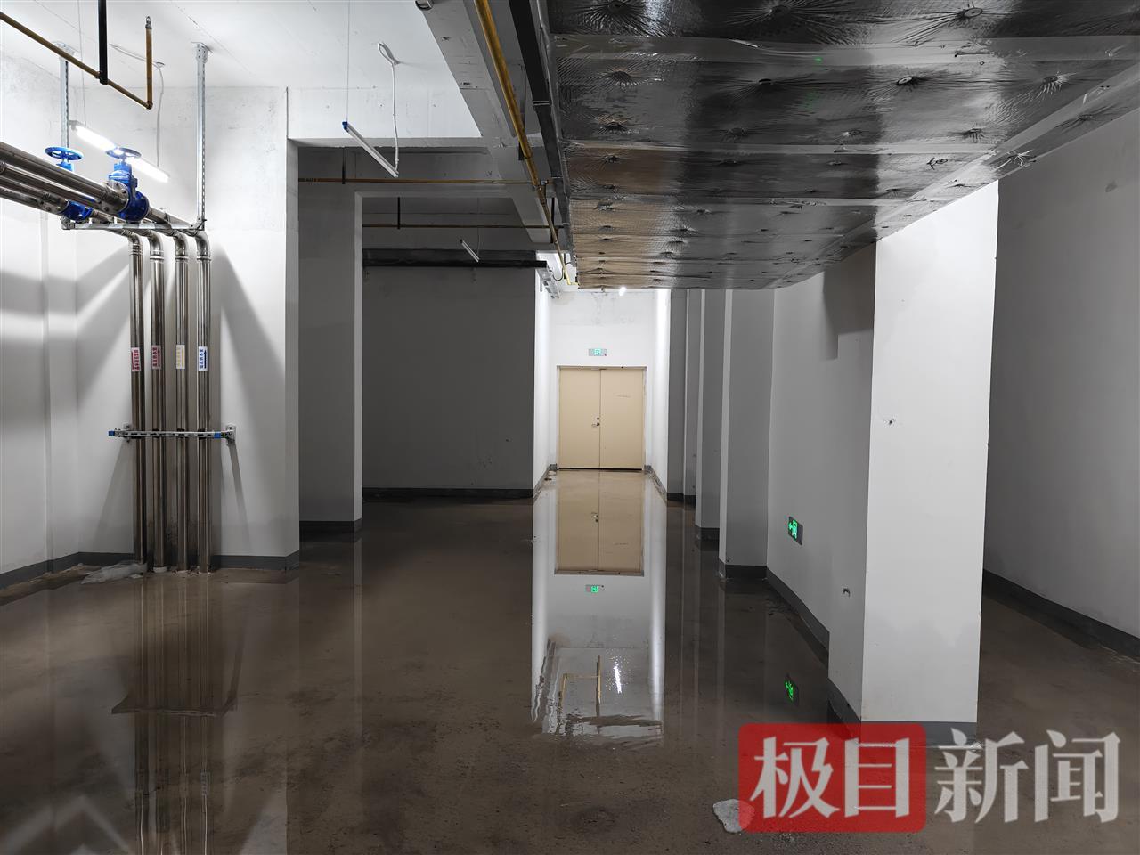 而在靠近电梯井的区域,地面被积水淹没,无从下脚,头顶还不断有水滴落。