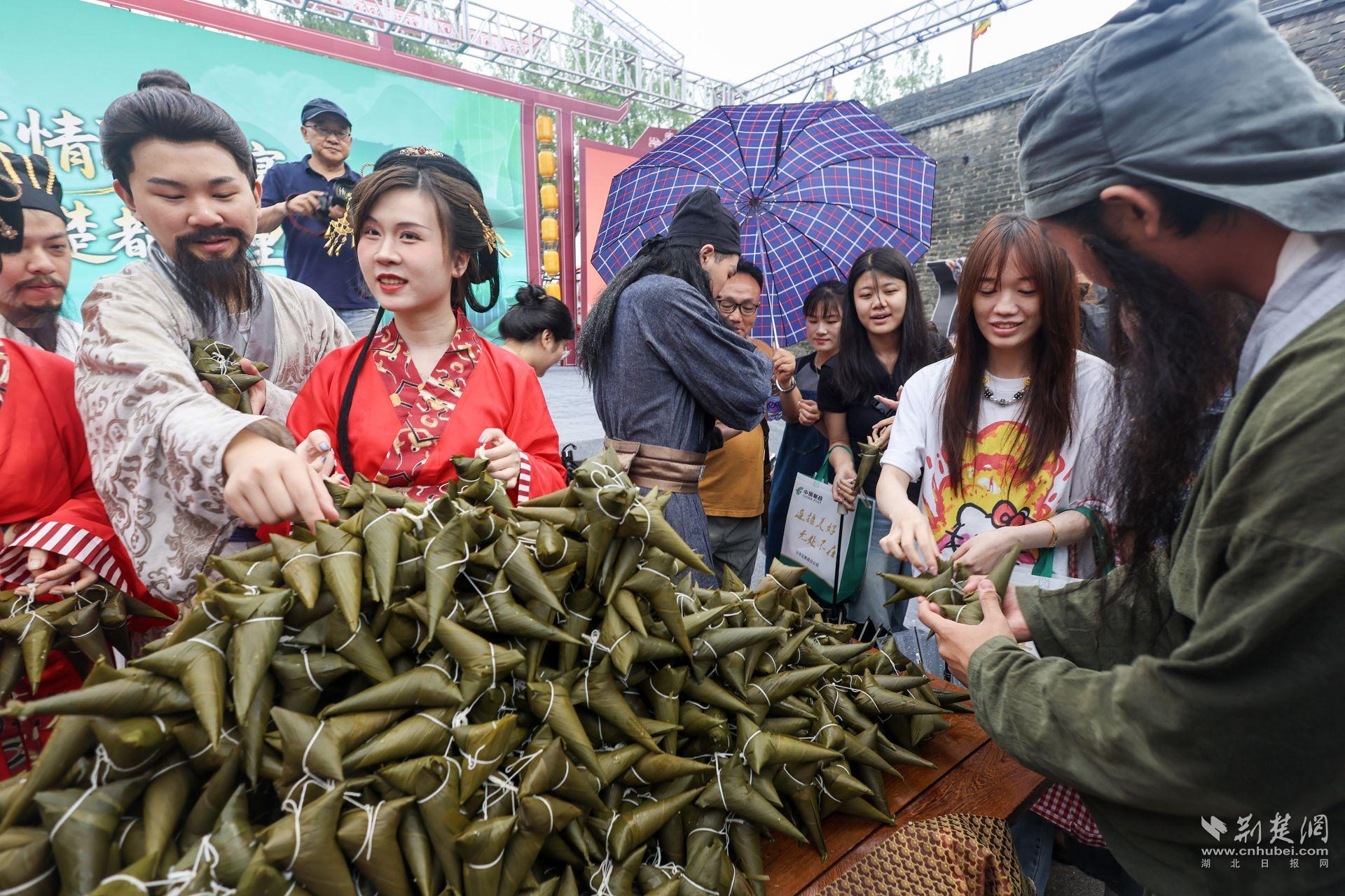 在角色扮演互动区,10名身着楚服的演员化身屈原、宋玉等历史人物,现场吟诵《九歌》选段;2名“哪吒”“敖丙”coser则吸引年轻群体驻足,传统与潮流的碰撞成为活动“破圈”亮点。