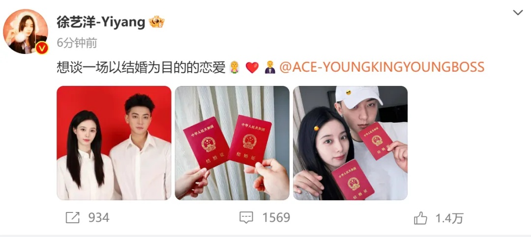 2024年12月2日,黄子韬、徐艺洋晒出结婚证,官宣结婚喜讯。
