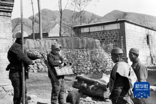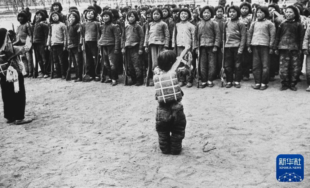 抗日战争时期,儿童团员在村口路边站岗放哨,保卫根据地。石少华 摄