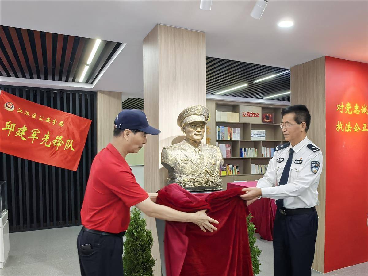 湖北日报讯(记者杨然、通讯员胡子昂、丁美薇)6月1日,武汉市公安局江汉区分局汉兴街汉兴派出所党建中心内,邱建军烈士雕像揭幕亮相。一年前的凌晨,汉兴派出所原副所长邱建军在带队处置一起持刀滋事的警情中,为保护现场群众和战友,与歹徒英勇搏斗,身中15处刀伤,壮烈牺牲,年仅50岁。