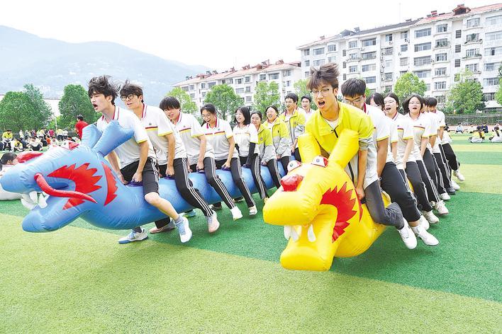 6月3日,保康县第一中学高三学生参加集体减压活动。高考临近,我省各地高中组织开展形式多样的趣味减压活动,帮助考生放松身心,以自信的心态迎接高考。(视界网 杨韬 赵硕 摄)