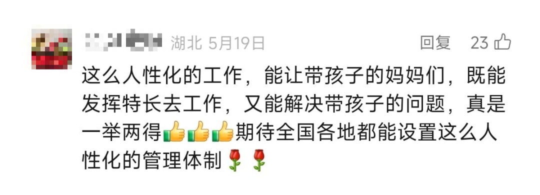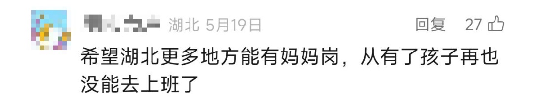 5月28日,湖北省人力资源和社会保障厅、省总工会、省妇联联合印发《关于推行“妈妈岗”就业模式促进妇女就业的通知》,决定在全省推行“妈妈岗”就业模式,方便宝妈们边带娃边工作。