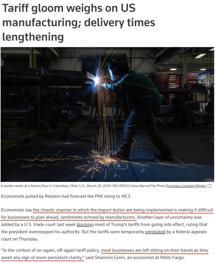 与此同时,关税乱拳持续反噬着美国经济。