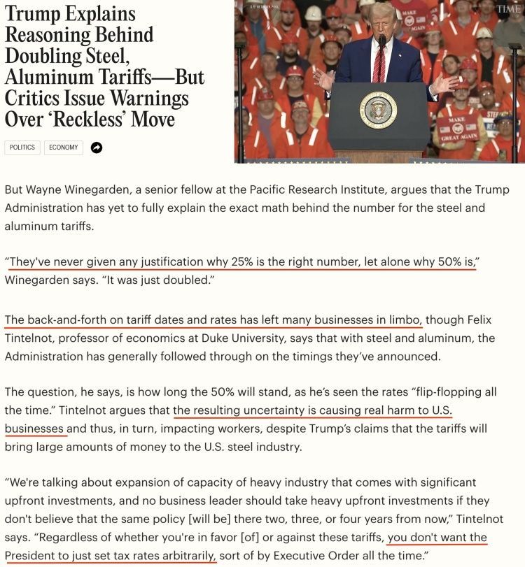 美国杜克大学经济学副教授费利克斯·廷特尔诺特则警告说,反复变动的税率产生的不确定性正在对美国企业造成实质性伤害,进而影响工人就业。这与白宫声称关税将给美国钢铁业带来巨额收益的说法形成鲜明对比。