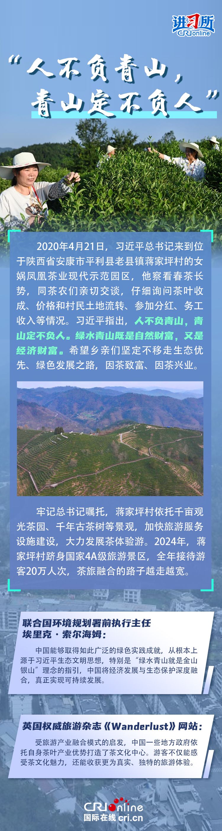 新时代以来,在习近平生态文明思想的科学指引下,“两山”理念已深入人心,从“点绿成金”的红树林到一座座“花果山”,再到走向世界的长汀经验……美丽中国建设迈出重大步伐,生态环境保护发生历史性变化。国际社会认为,中国取得广泛的绿色发展成就,从根本上源于习近平生态文明思想,特别是“两山”理念的指引。在通过绿色转型推动经济可持续发展方面,中国正成为全球可持续发展的典范。